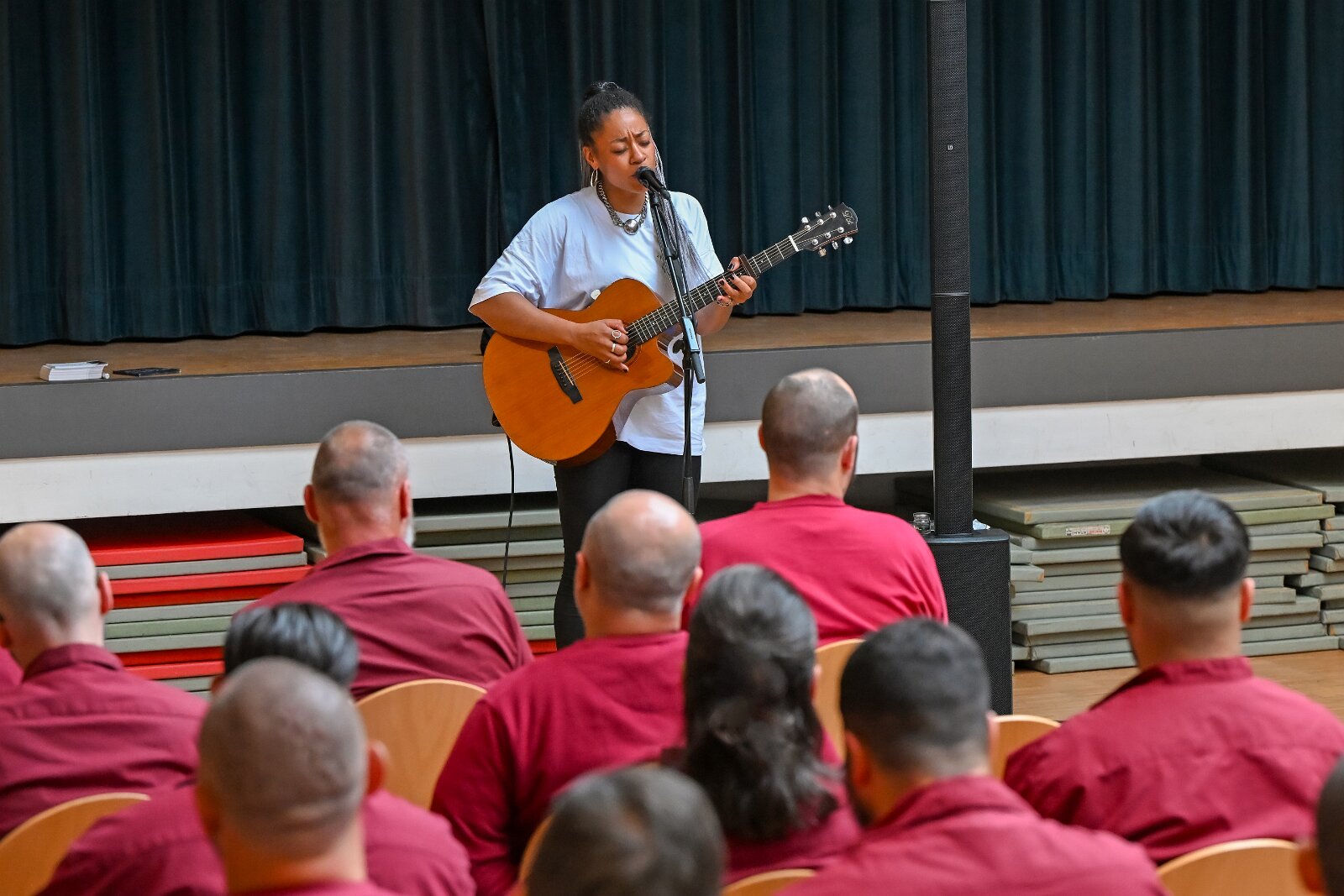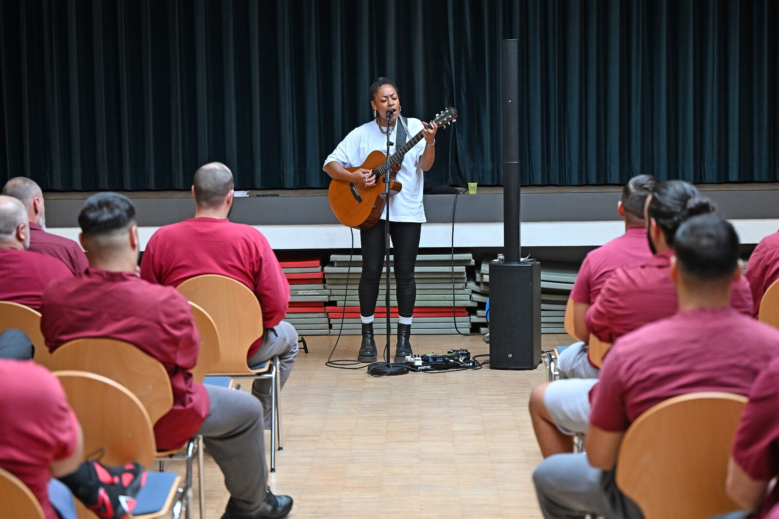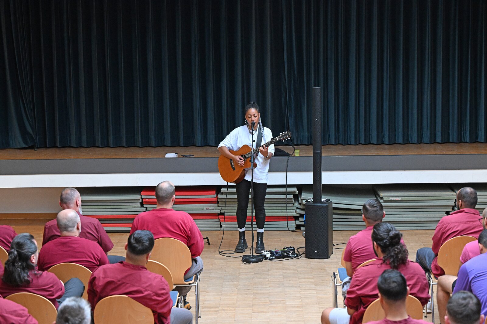 Diana Ezerex tritt in der JVA Weiterstadt am 21. August 2024 vor rund 70 Insassen auf. 21082024 Justizvollzugsanstalt Weiterstadt /Hessen.