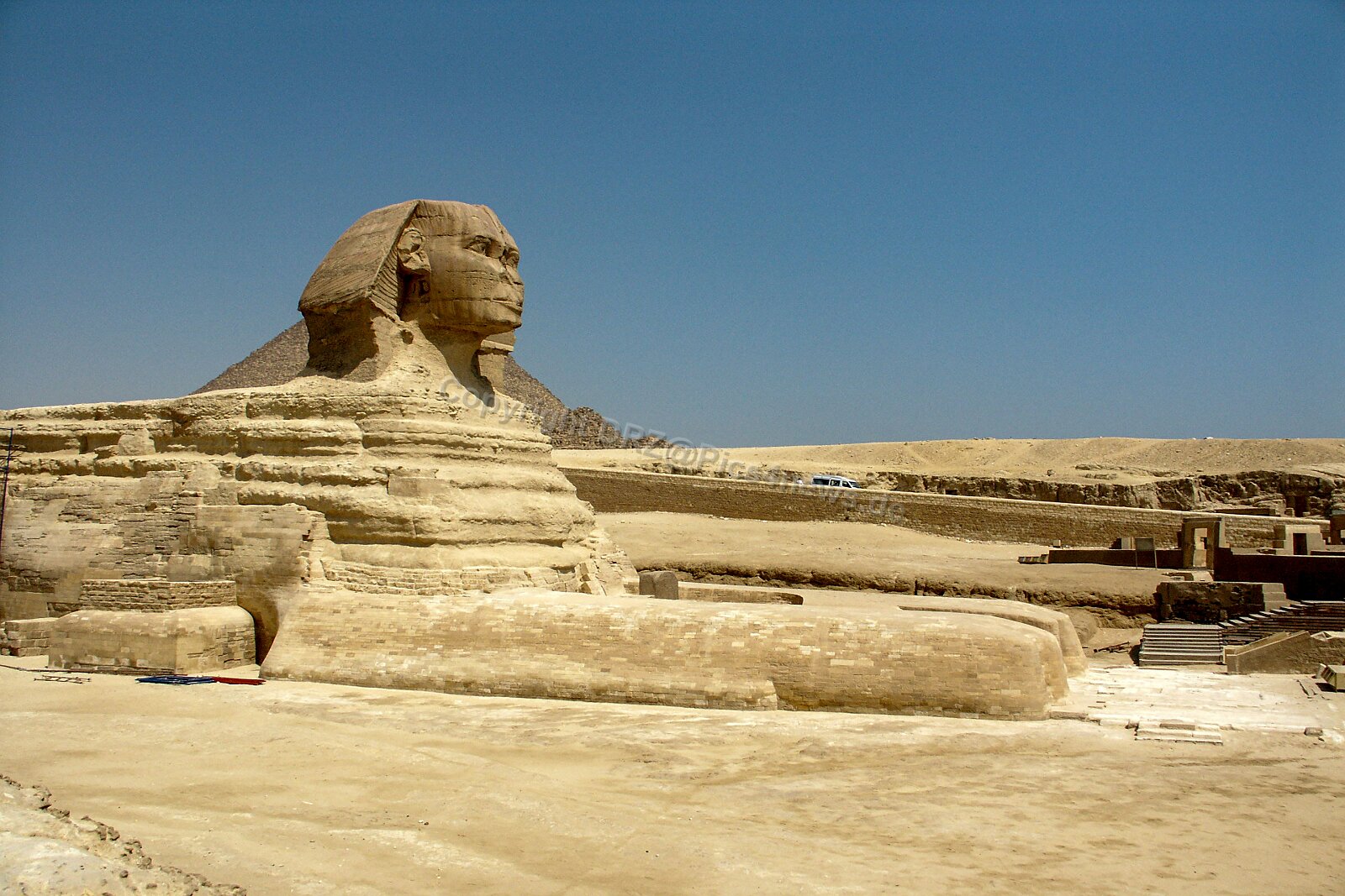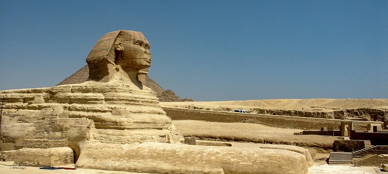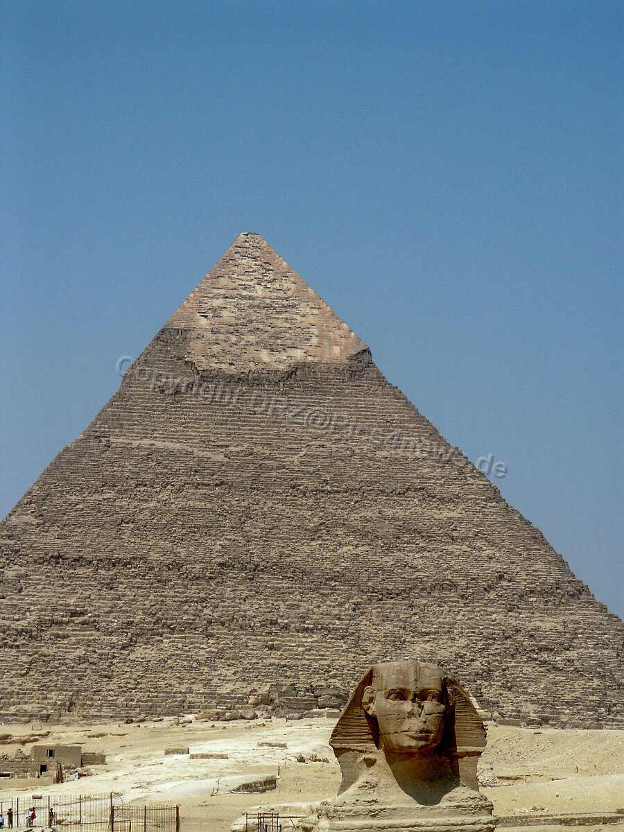 Sphinx Kopf mit Pyramide im Hintergrund Sphinx Kopf mit Pyramide im Hintergrund