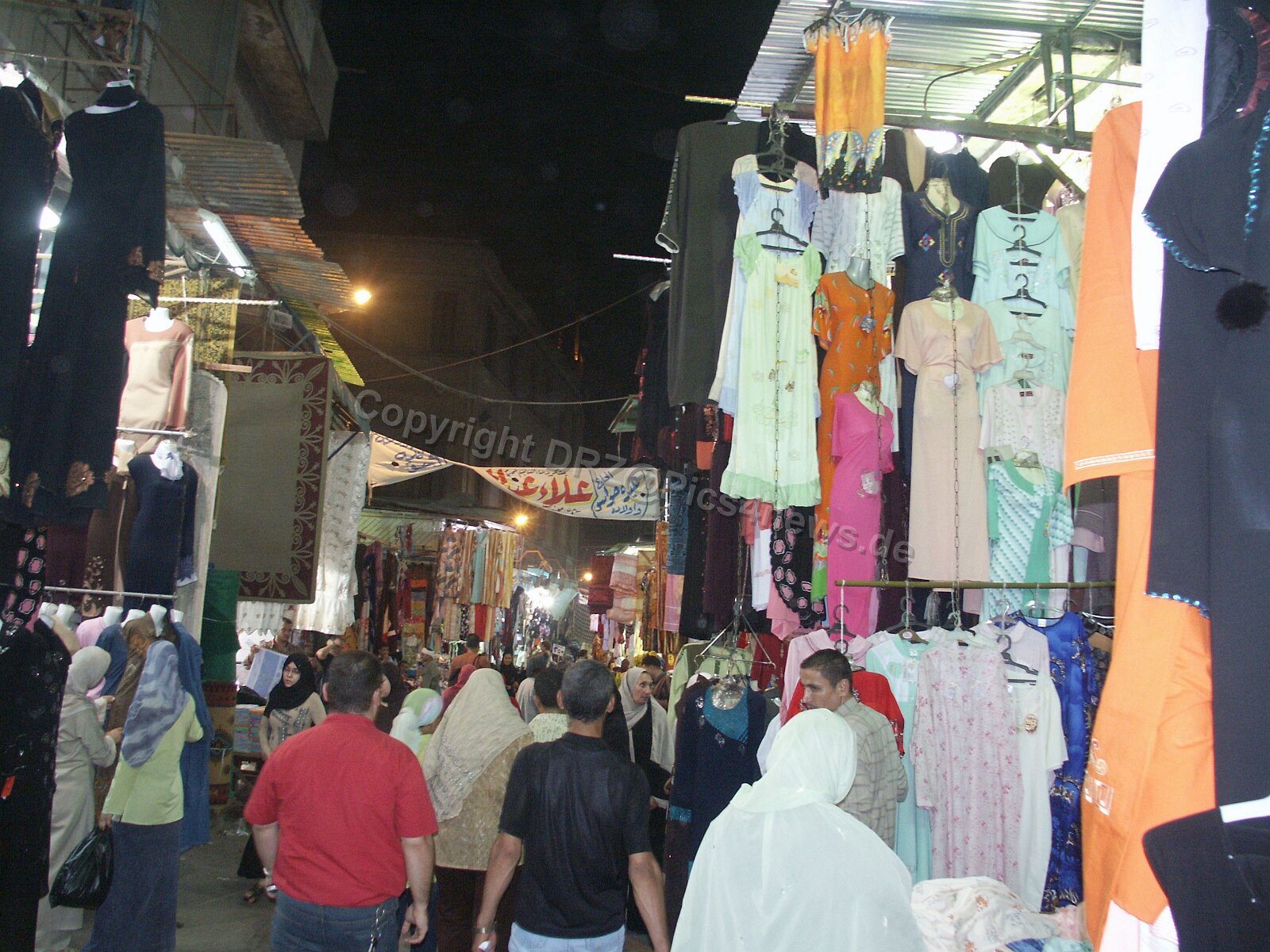 Stoffe und Kleider auf dem Basar in Kairo Stoffe und Kleider auf dem Basar in Kairo