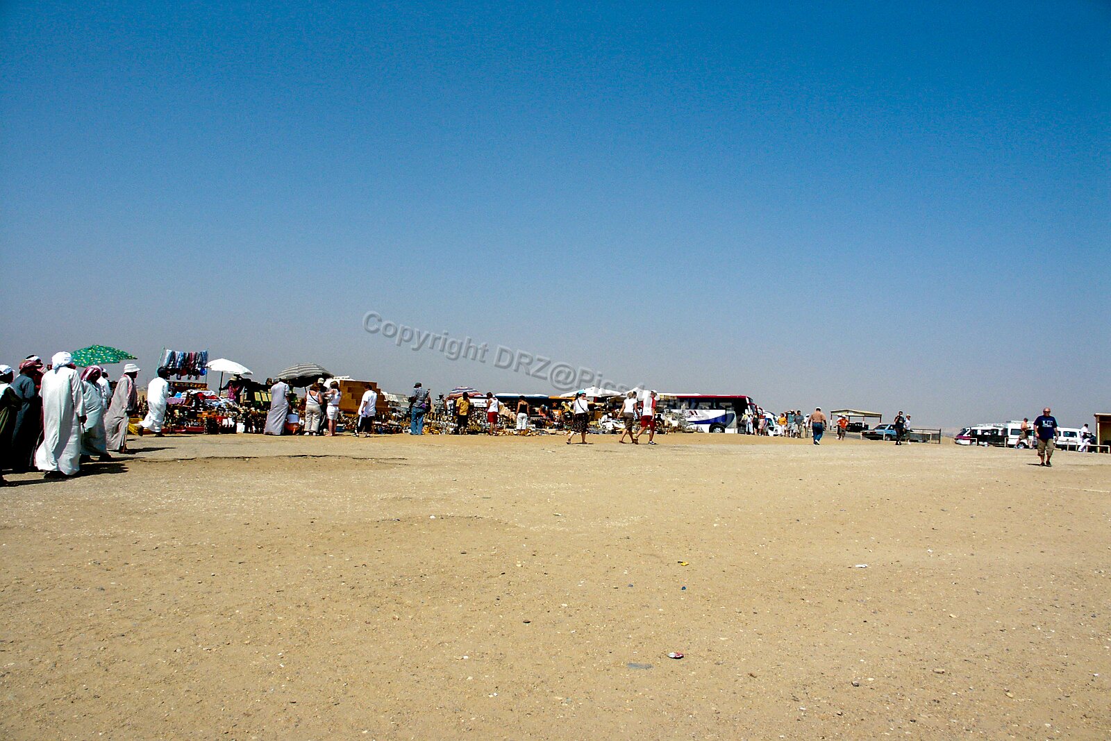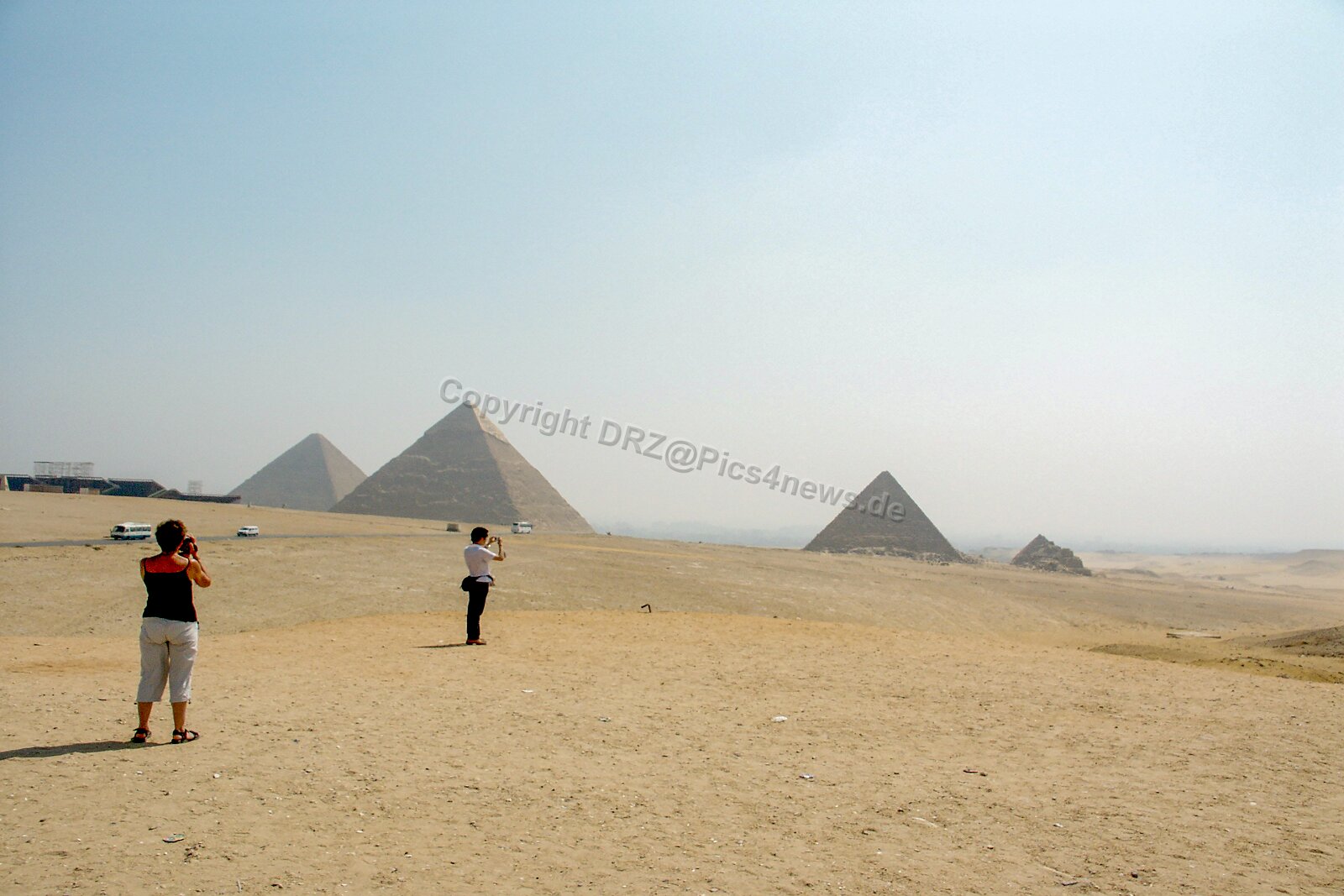 Touristen am Aussichtspunkt zu den Pyramiden Touristen am Aussichtspunkt zu den Pyramiden